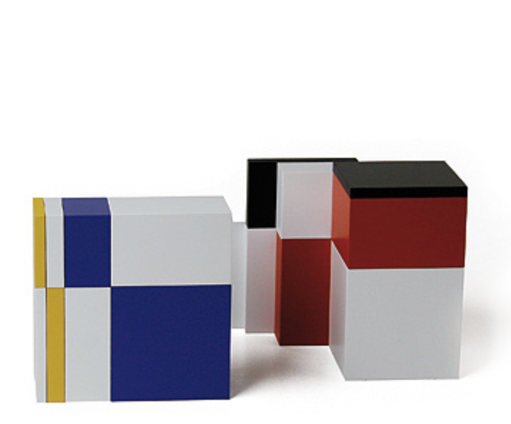 16 Teile aus Massivholz farbig in einer schwarzen Holzbox, 11,5 x 11,5 x 11,5 cm