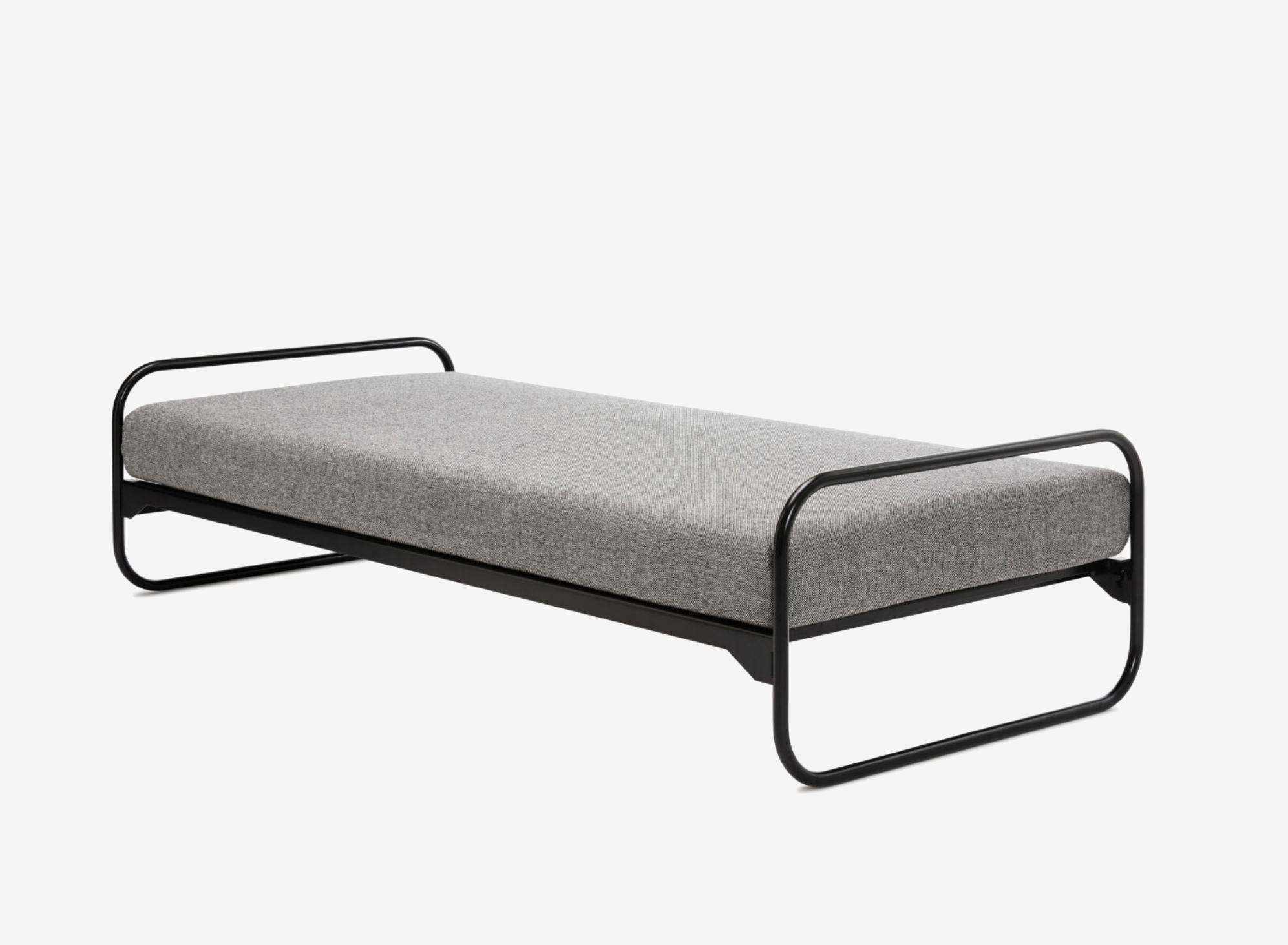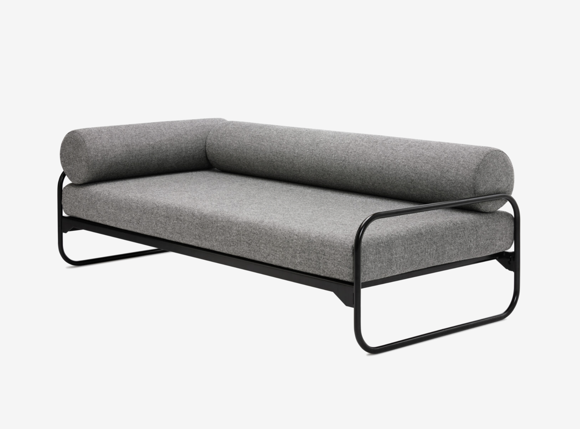 Our price refers to the dimensions 200 x 90 H 50 cm, with slatted frame, spring mattress with upholstery cover in Kvadrat Hallingdal 65 or Steelcut 3 fabric, chrome or black tubular steel frame (surcharge for large side roll: €1,175.00, small neck roll: €718.00)