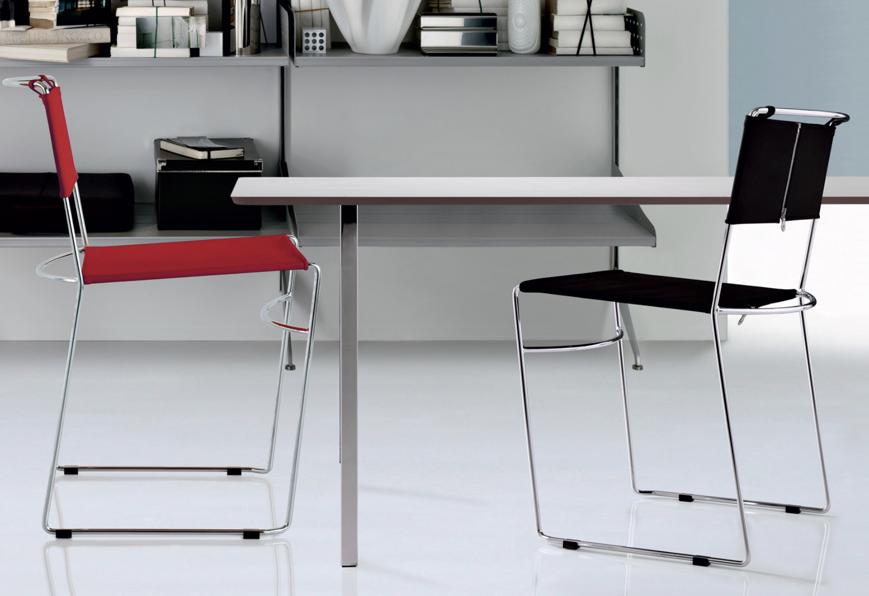 Entworfen von Enzo Mari im Jahr 1974 und 1979 mit dem Compasso d'Oro ausgezeichnet, besticht er noch immer durch die minimalistische Eleganz seiner Stahlrohrkonstruktion, die mit einem abnehmbaren Stoffbezug versehen ist.